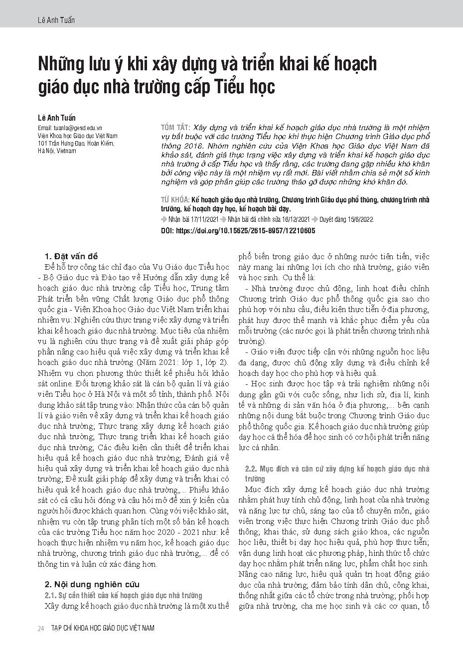 Những lưu ý khi xây dựng và triển khai kế hoạch giáo dục nhà trường cấp Tiểu học = Things to consider when developing and implementing a school educational plan in primary schools