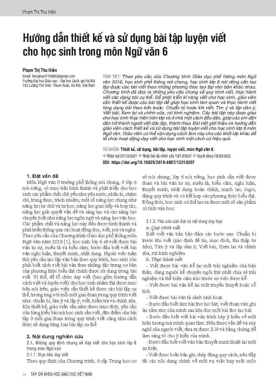 Hướng dẫn thiết kế và sử dụng bài tập luyện viết cho học sinh trong môn Ngữ văn 6 = Instructions for designing and using writing exercises for 6th grade students in the subject of philology