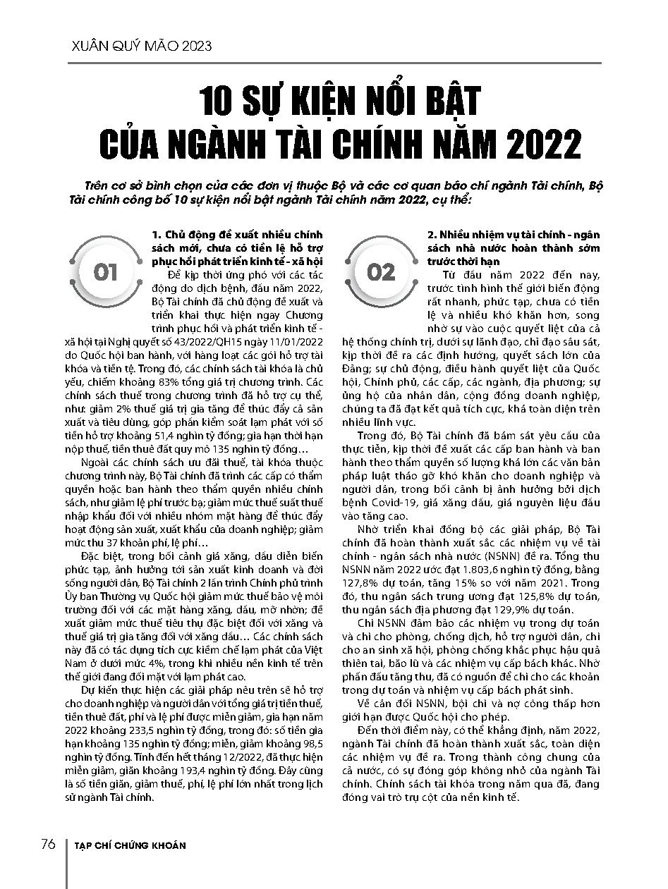 10 sự kiện nổi bật của ngành tài chính năm 2022 = Top 10 outstanding events & issues of vietnam's financial industry in 2022