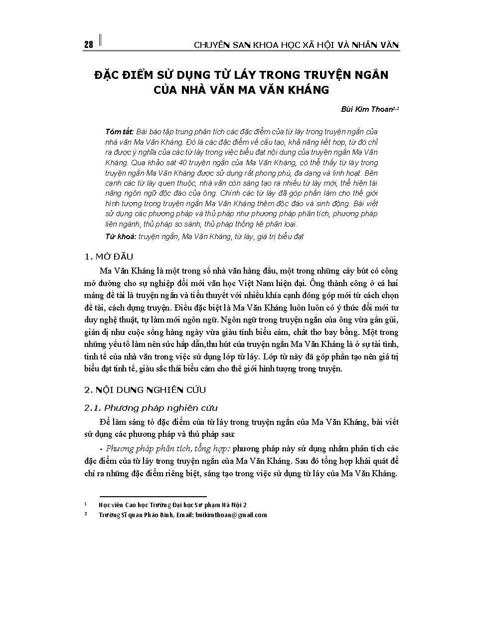 Đặc điểm sử dụng từ láy trong truyện ngắn của nhà văn Ma Văn Kháng = Characteristics of using the duplicated words in short stories of written Ma Van Khang