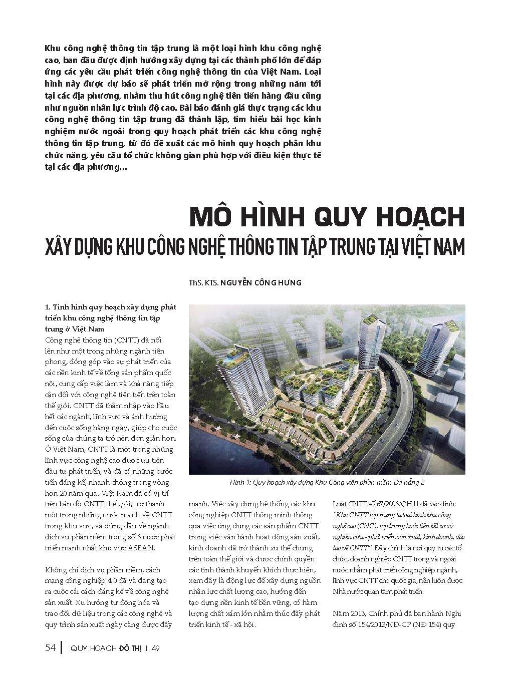 Mô hình quy hoạch xây dựng khu công nghệ thông tin tập trung tại Việt Nam
