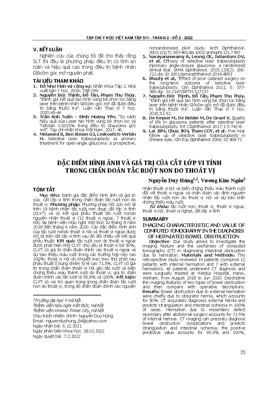 Đặc điểm hình ảnh và giá trị của cắt lớp vi tính trong chẩn đoán tắc ruột non do thoát vị = Imaging characteristic and value of computed tomography in the diagnosis of herniated bowel obstruction