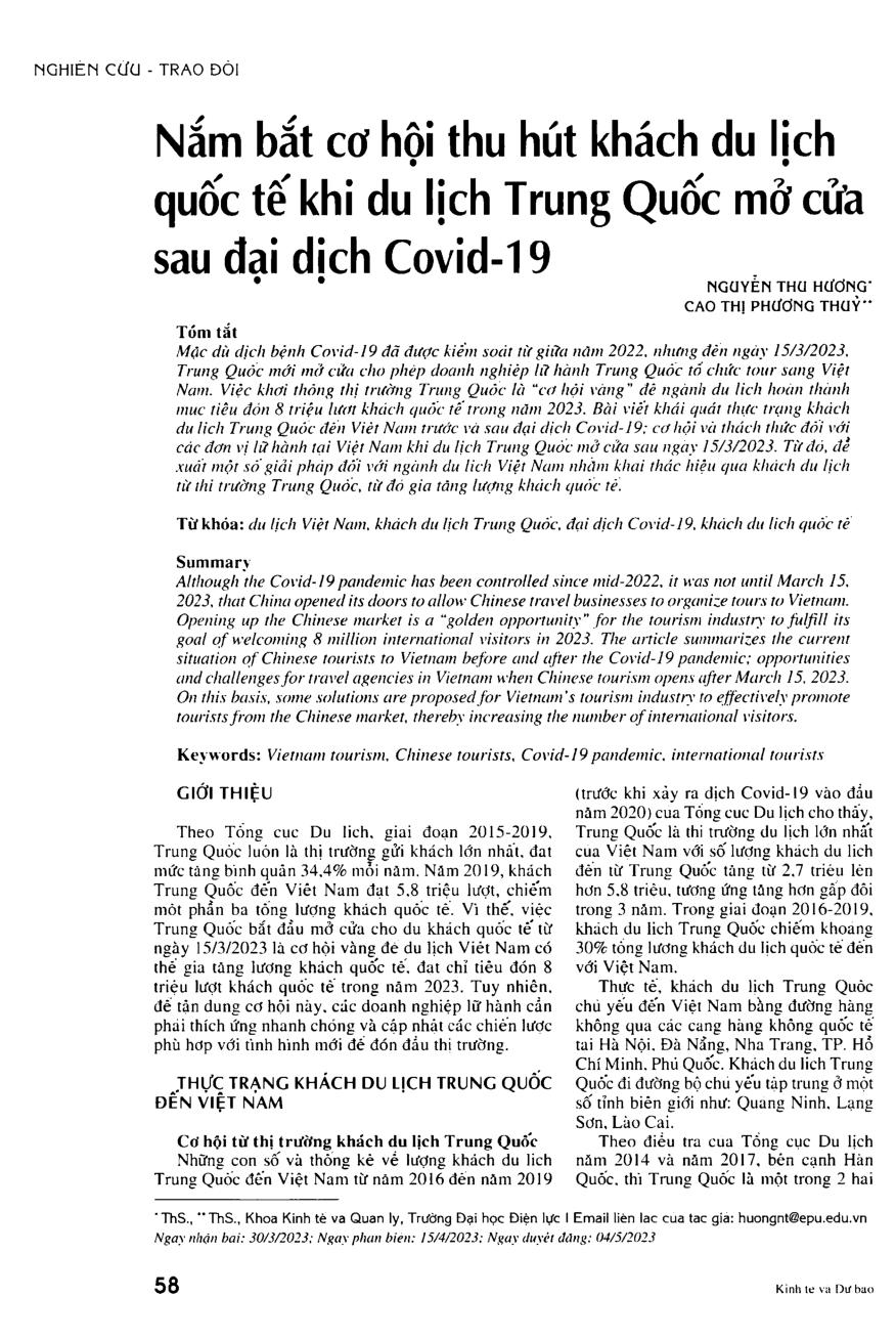 Nâng cao bất cô hội thu hút khách du lịch quốc tế khi du lịch Trung Quốc mở cửa sau đại dịch Covid-19