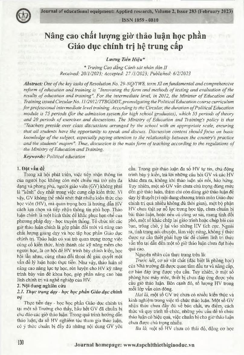 Nâng cao chất lượng giờ thảo luận học phần Giáo dục chính trị hệ trung cấp = Improve the quality of discussion hours in the Intermediate Political Education module