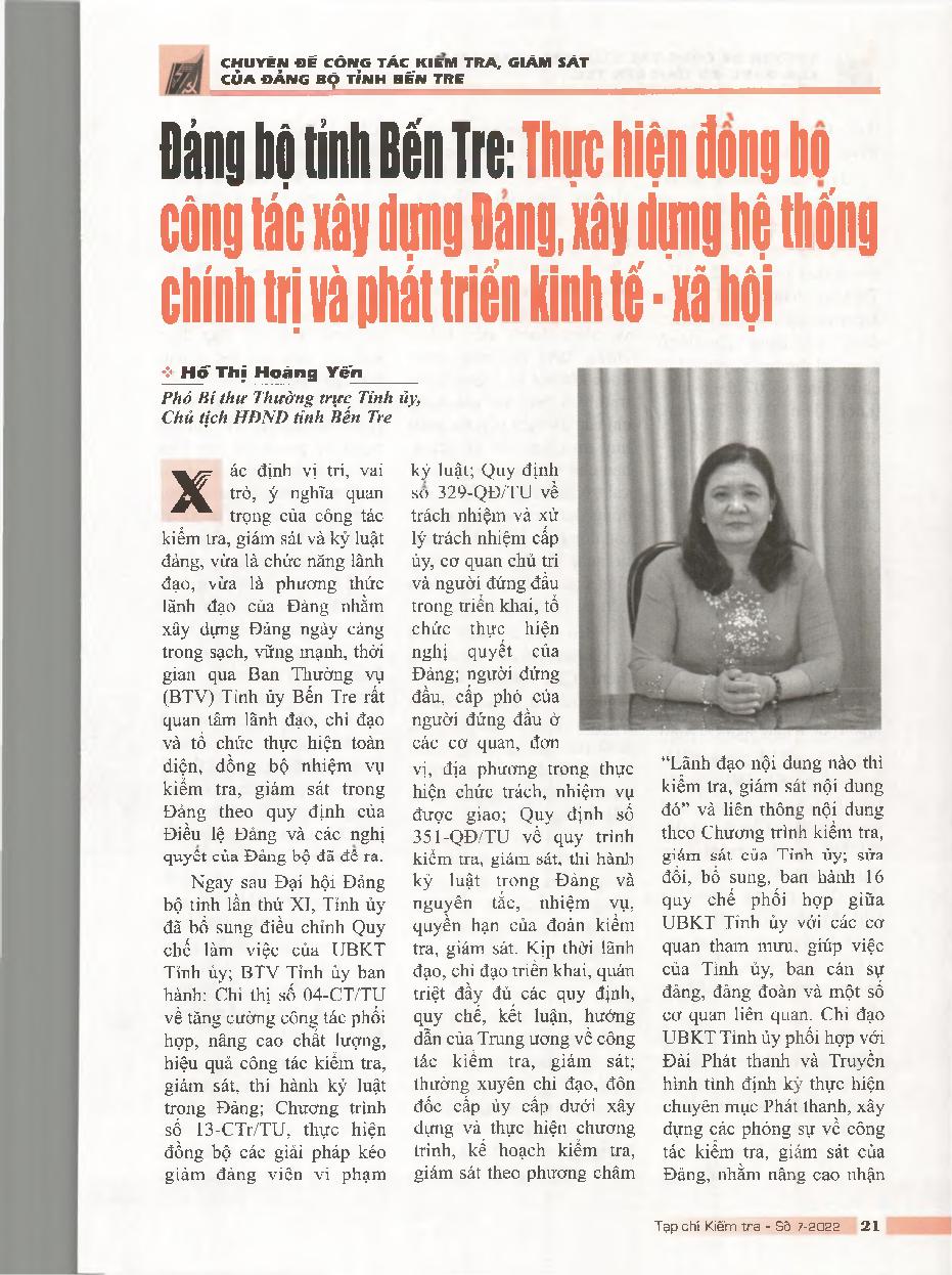 Đảng bộ tỉnh Bến Tre thực hiện đồng bộ công tác xây dựng Đảng, xây dựng hệ thống chính trị và phát triển kinh tế - xã hội