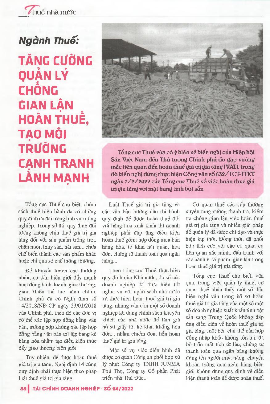 Ngành Thuế: Tăng cường quản lý chống gian lận hoàn thuế tạo môi trường cạnh tranh lành mạnh = Tax industry: Strengthening management against tax refund fraud to create a healthy competitive environment