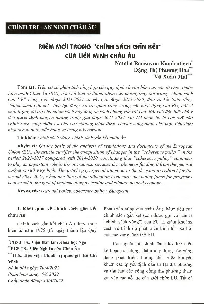 Điểm mới trong “Chính sách gắn kết” của Liên minh Châu Âu = New points in the European Union’s “coherence policy”