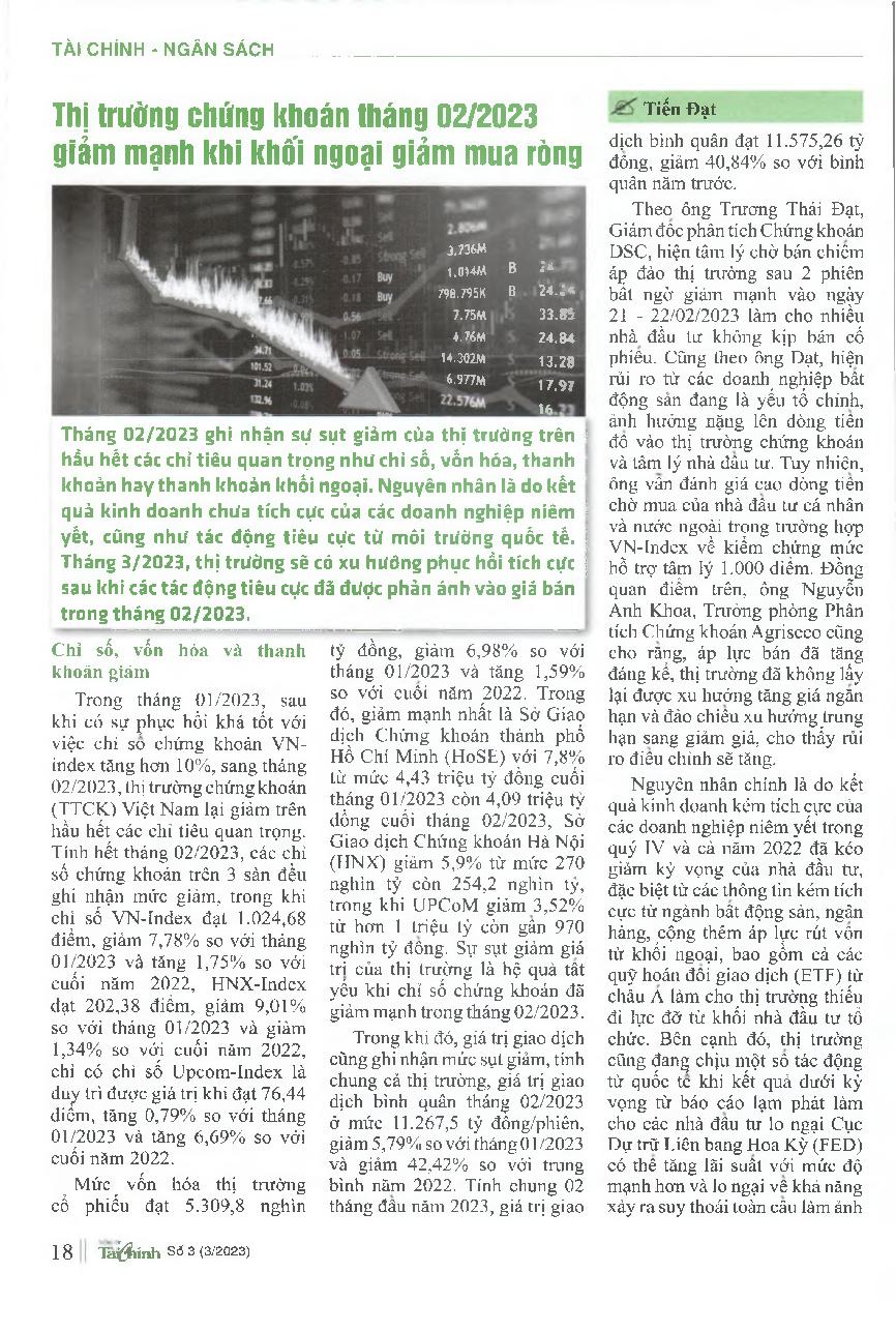 Thị trường chứng khoán tháng 02/2023 giảm mạnh khi khối ngoại giảm mua ròng