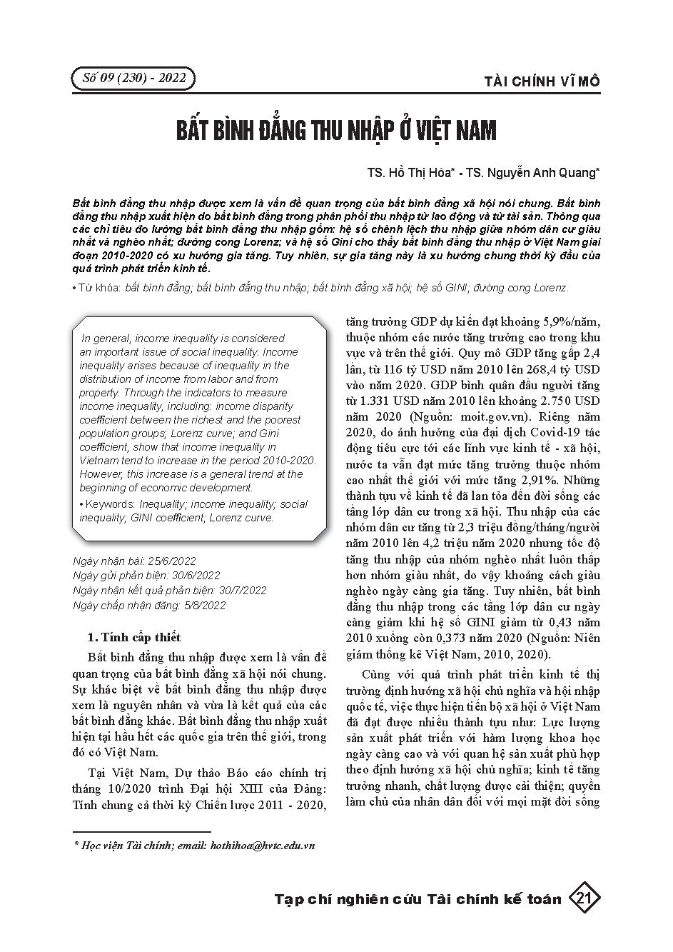 Bất bình đẳng thu nhập ở Việt Nam = Income inequality in Vietnam