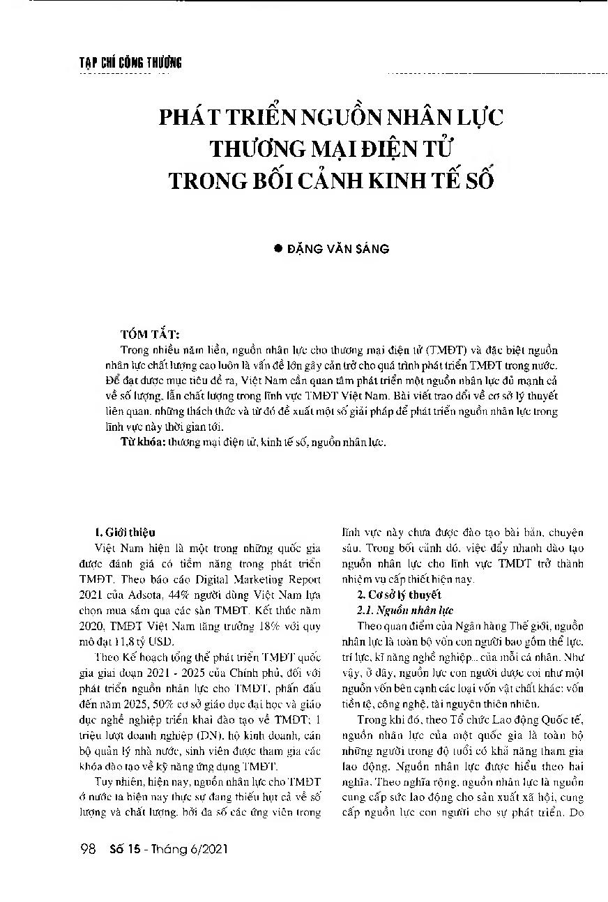 Phát triển nguồn nhân lực thương mại điện tử trong bối cảnh kinh tế số = The development of human resources for the e-commerce sector in the context of digital economy