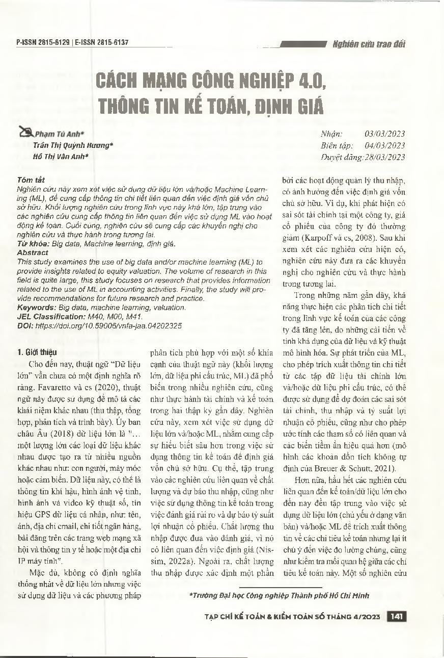 Cách mạng công nghiệp 4.0, thông tin kế toán, định giá = Industrial revolution 4.0, accounting information, valuation