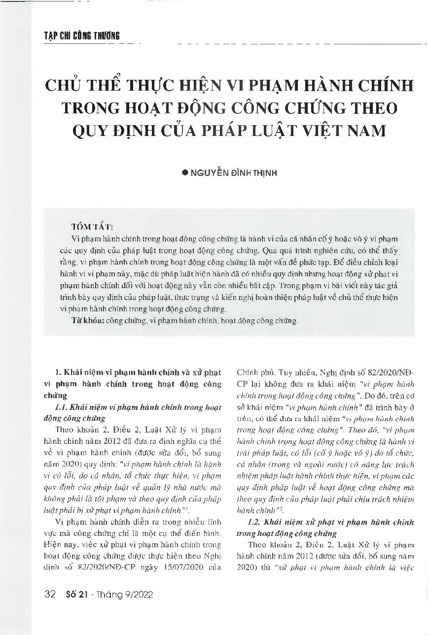 Chủ thể thực hiện vi phạm hành chính trong hoạt động công chứng theo quy định của pháp luật Việt Nam = Subjects of administrative violations in notarization activities under Vietnamese regulations