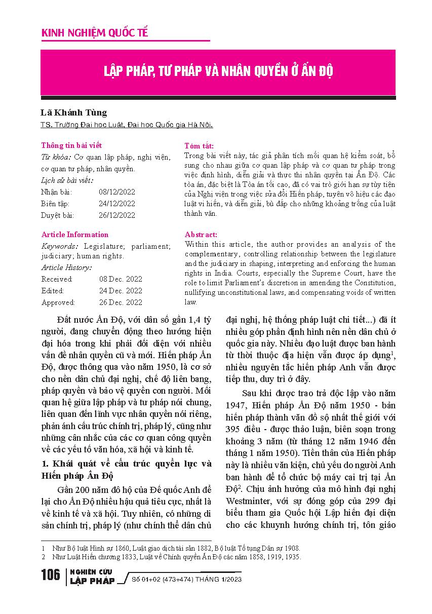 Lập pháp, tư pháp và nhân quyền ở Ấn Độ = Legislative, judicial and human rights in India