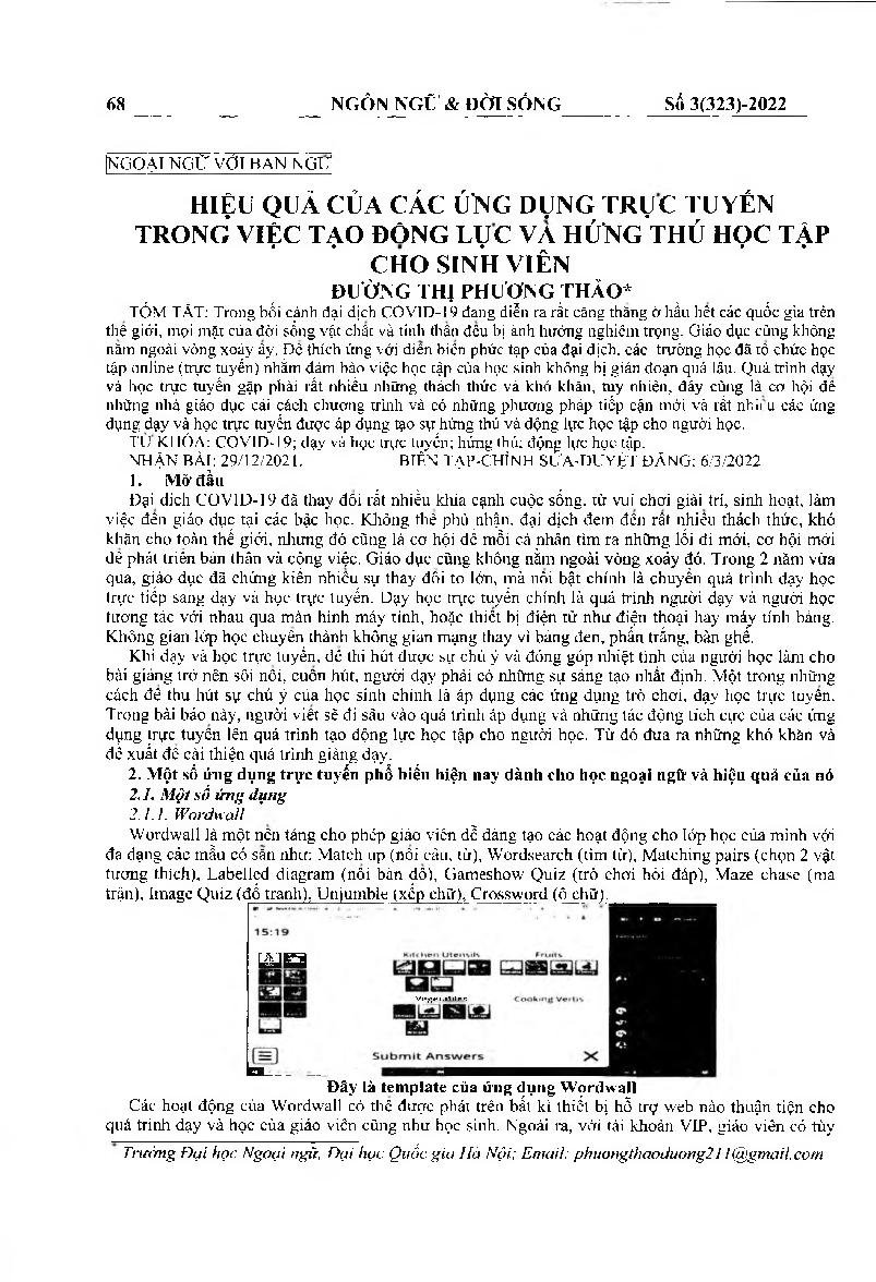 Hiệu quả của các ứng dụng trực tuyến trong việc tạo động lực và hứng thú học tập cho sinh viên = The efficiency of online applications in fostering learners’ motivation and interests