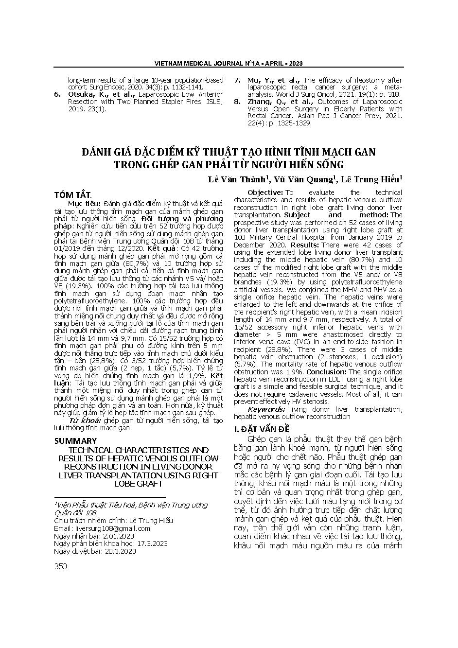 Đánh giá đặc điểm kỹ thuật tạo hình tĩnh mạch gan trong ghép gan phải từ người hiến sống = Technical characteristics and results of hepatic venous outflow reconstruction in living donor liver transplantation using right lobe graft
