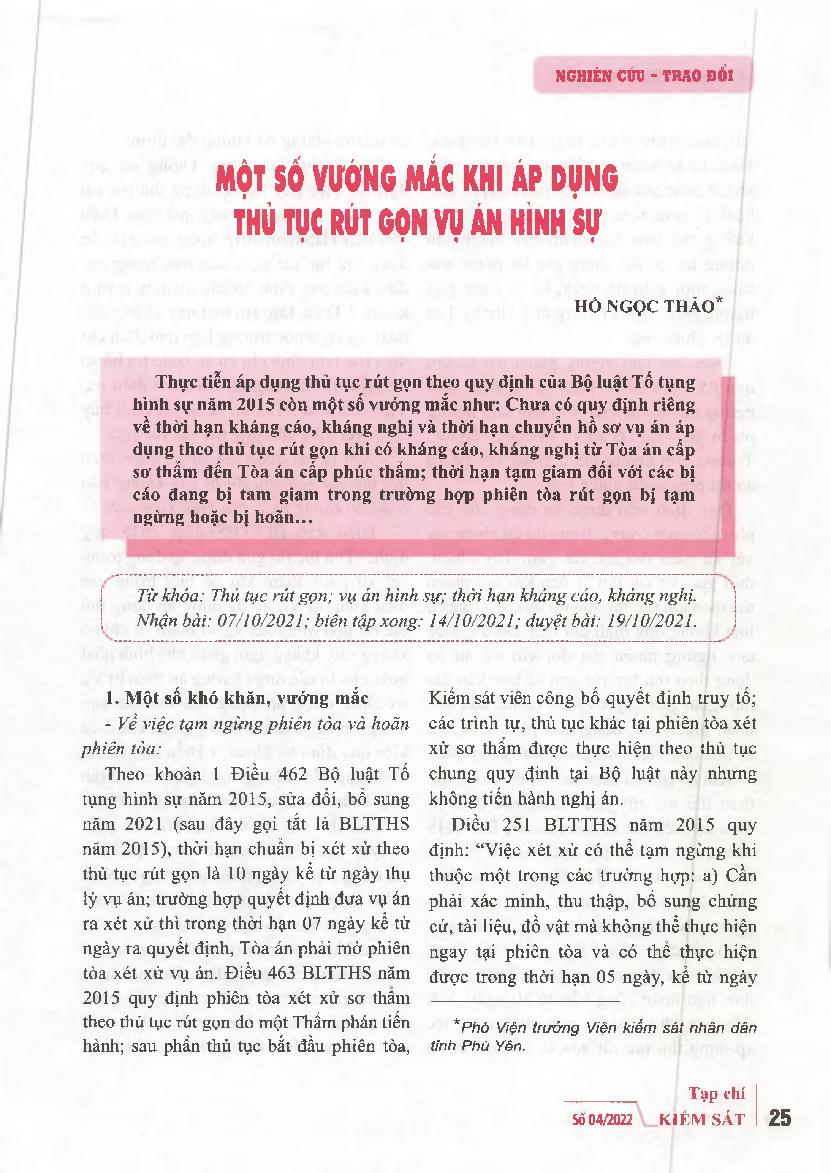 Một số vướng mắc khi áp dụng thủ tục rút gọn vụ án hình sự