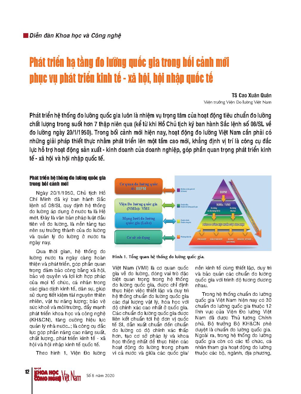 Phát triển hạ tầng đo lường quốc gia trong bối cảnh mới phục vụ phát triển kinh tế - xã hội, hội nhập quốc tế. = Developing national measurement infrastructure in the new context for serving socio-economic growth and international integration.