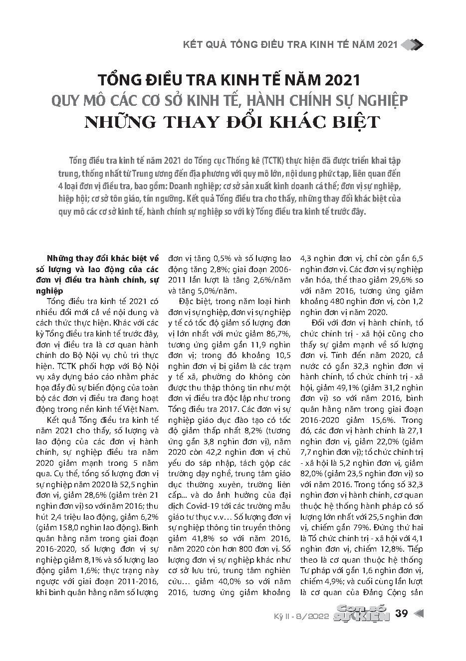 Tổng điều tra kinh tế năm 2021- Quy mô các cơ sở kinh tế, hành chính sự nghiệp những thay đổi khác biệt