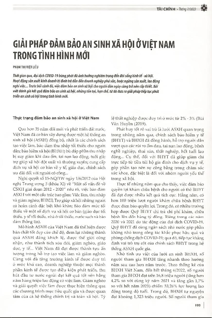 Giải pháp đảm bảo an sinh xã hội ở Việt Nam trong tình hình mới = Solutions to ensure social security in Vietnam in the new context