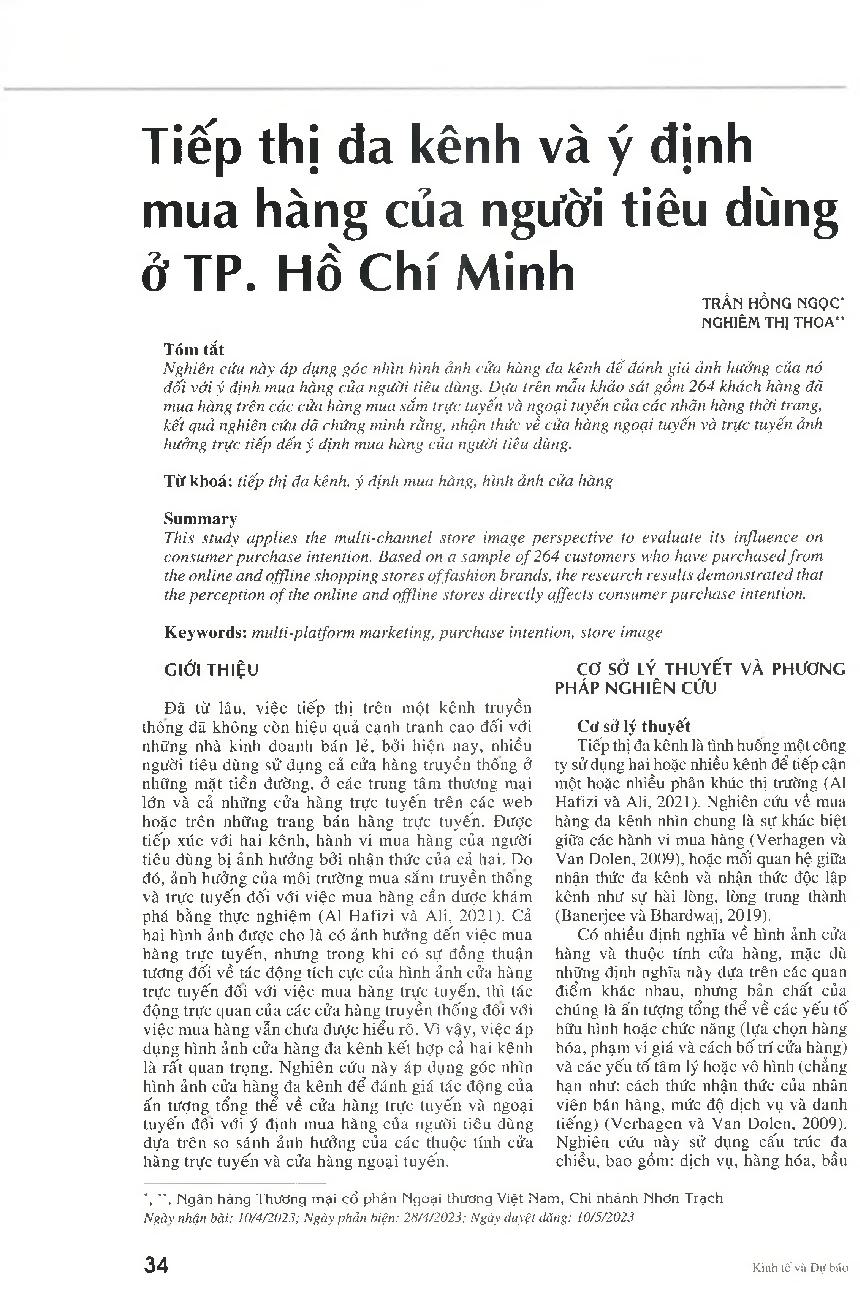 Tiếp thị đa kênh và ý định mua hàng của người tiêu dùng ở TP. Hồ Chi Minh