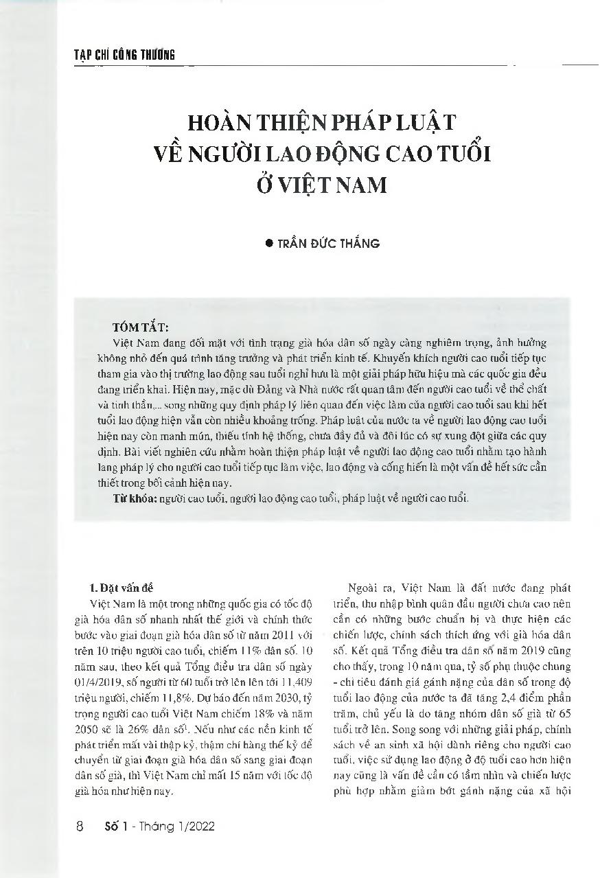 Hoàn thiện pháp luật về người lao động cao tuổi ở Việt Nam = Completing the law on elderly workers in Vietnam