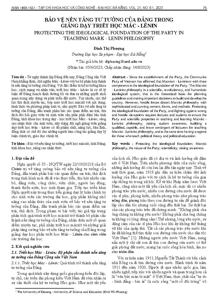 Bảo vệ nền tảng tư tưởng của đảng trong giảng dạy triết học Mác - Lênin = Protecting the ideological foundation of the party in teaching Mark - Lenin philosophy
