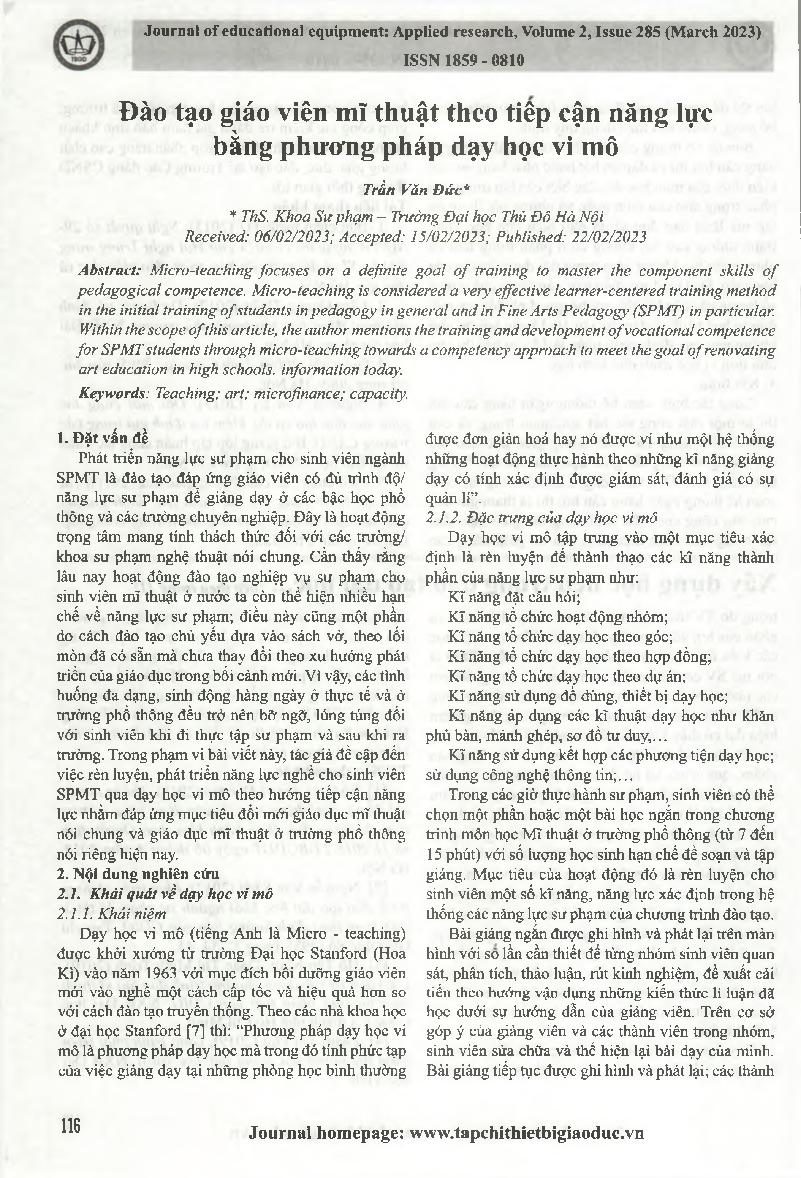 Đào tạo giáo viên mĩ thuật theo tiếp cận năng lực bằng phương pháp dạy học vi mô = Art teacher training following the micro teaching approach