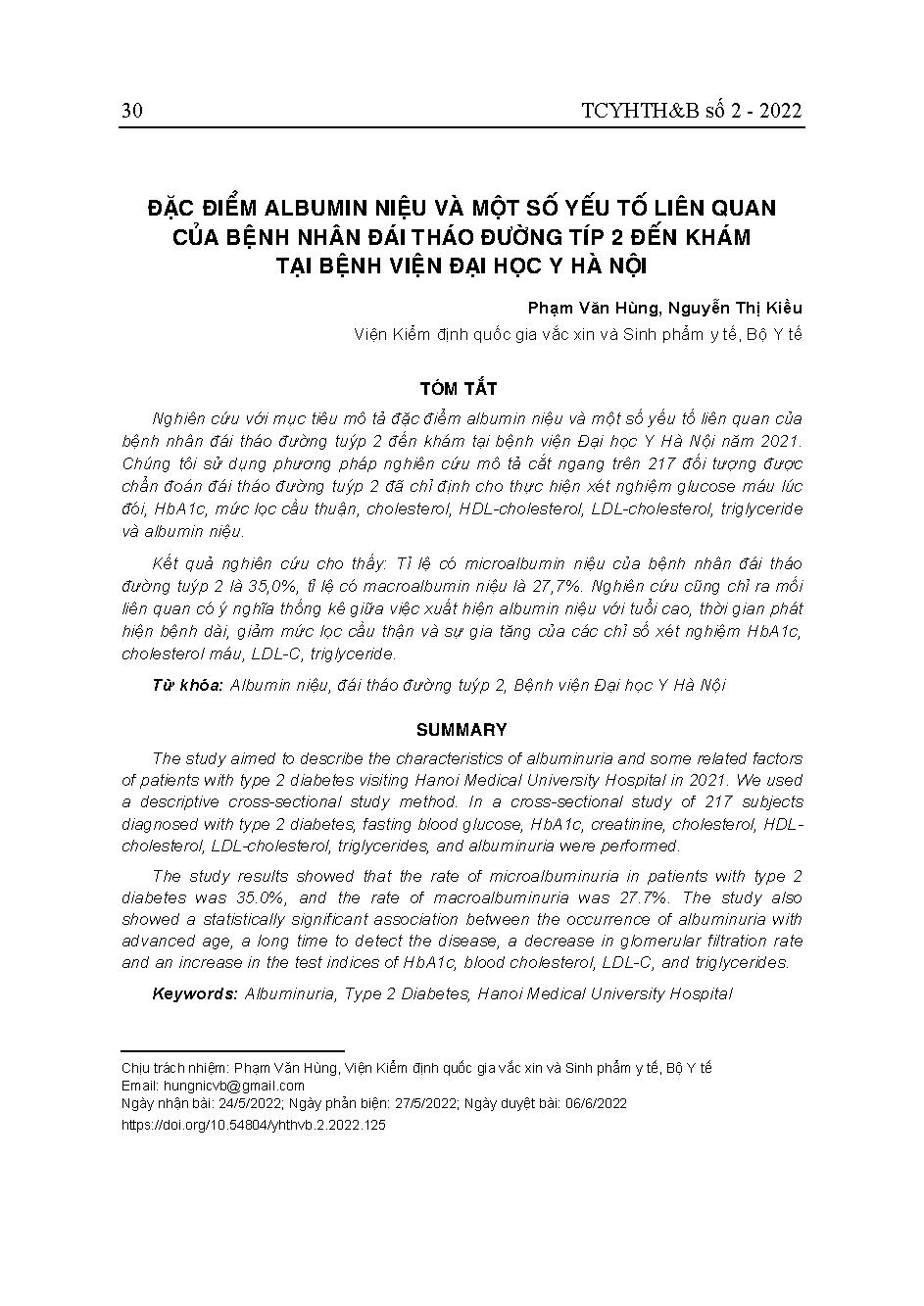 Đặc điểm albumin niệu và một số yếu tố liên quan của bệnh nhân đái tháo đường típ 2 đến khám tại Bệnh viện Đại học Y Hà Nội