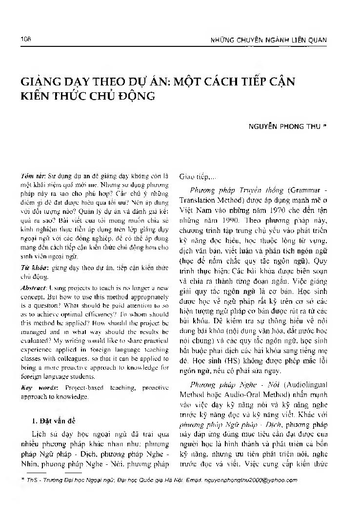Giảng dạy theo dự án: một cách tiếp cận kiến thức chủ động = Project-based teaching method: a proactive approach