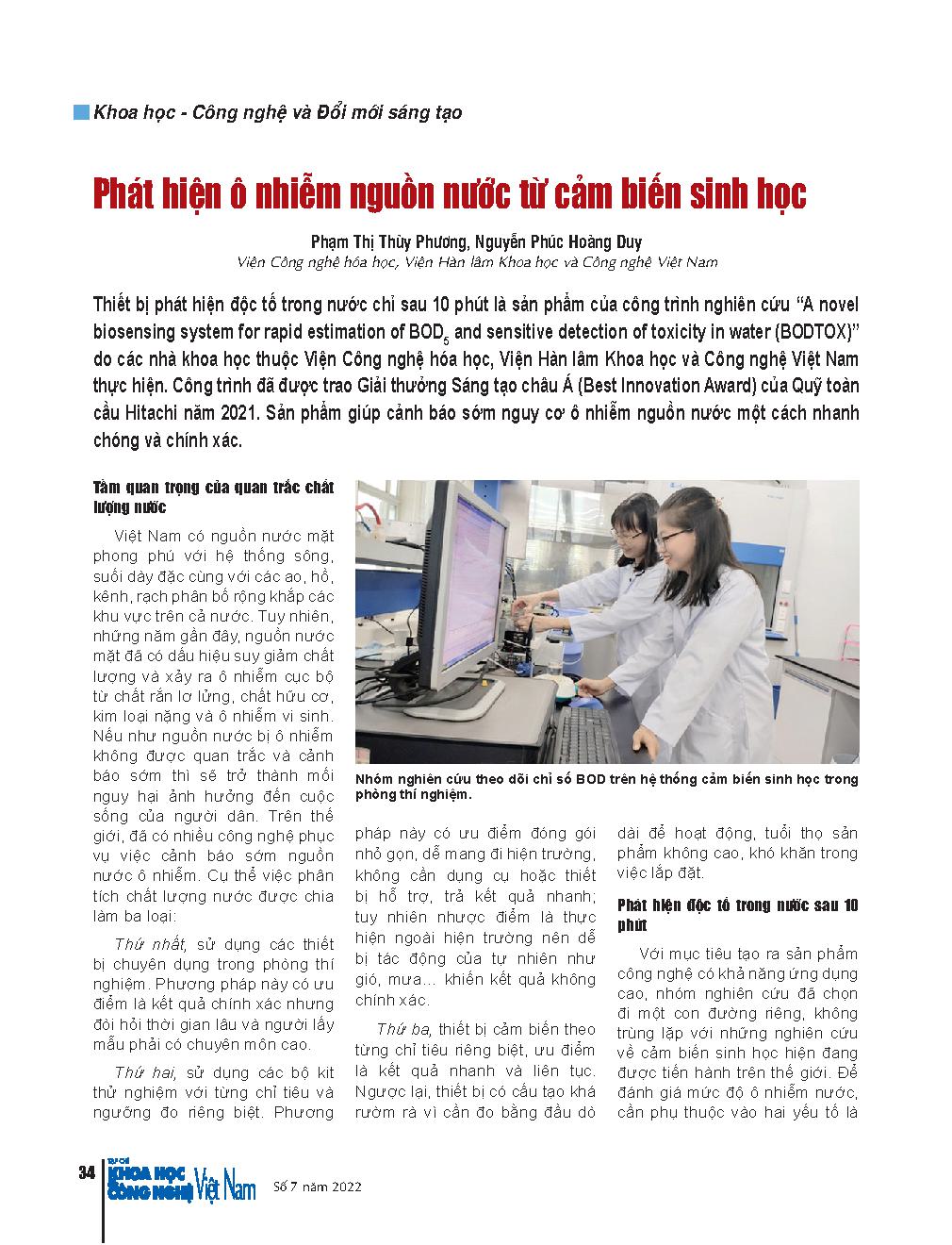 Phát hiện ô nhiễm nguồn nước từ cảm biến sinh học = Detect water pollution from biological sensors