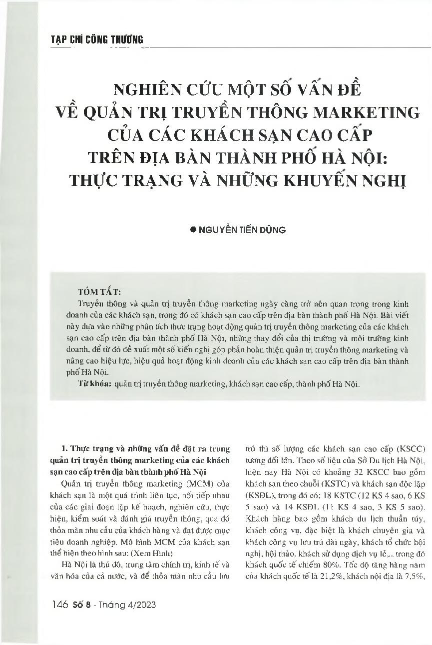 Nghiên cứu một số vấn đề về quản trị truyền thông marketing của các khách sạn cao cấp trên địa bàn thành phố Hà Nội: Thực trạng và những khuyến nghị