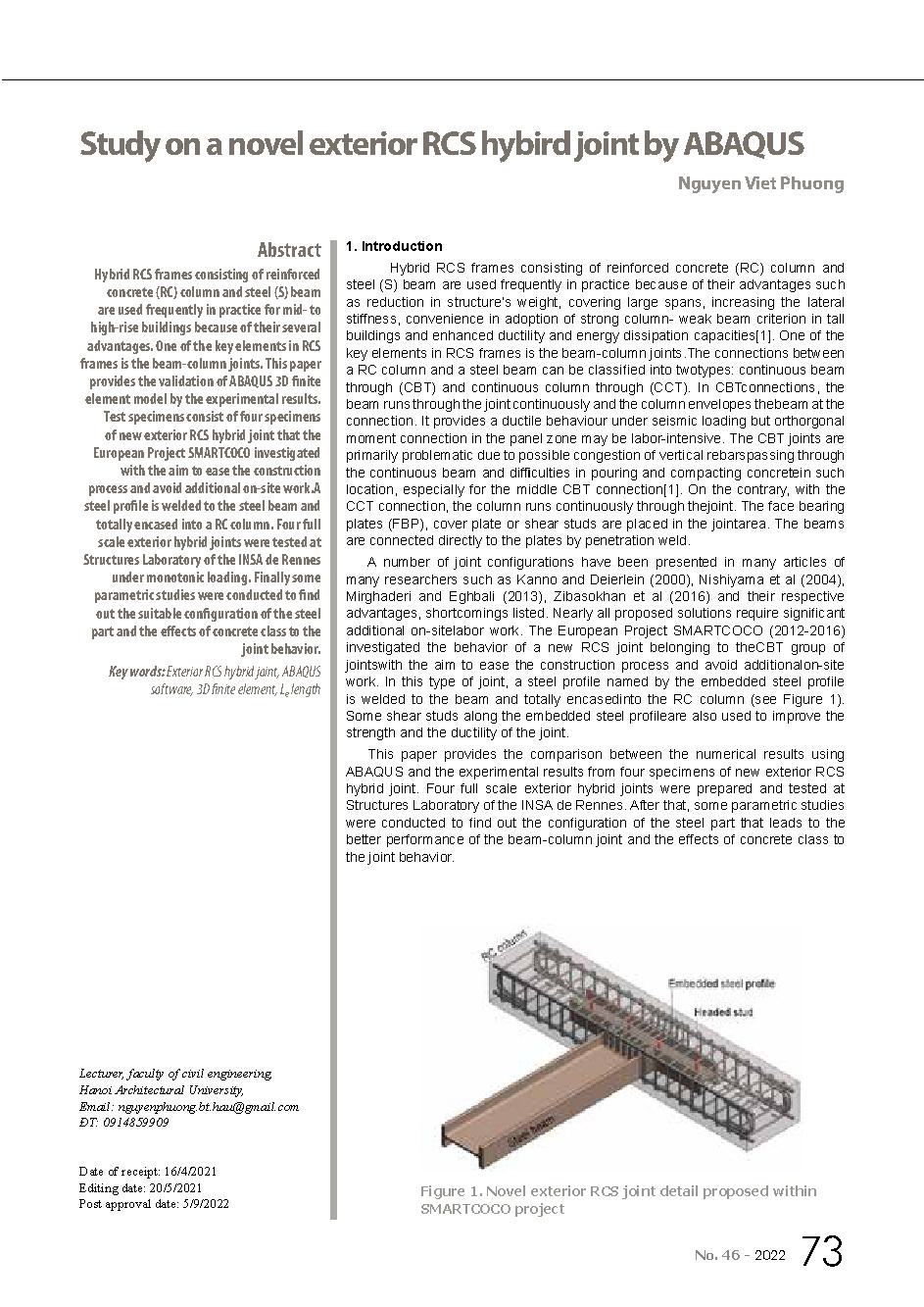 Nghiên cứu về khớp nối hybird RCS bên ngoài mới lạ của ABAQUS = Study on a novel exterior RCS hybird joint by ABAQUS