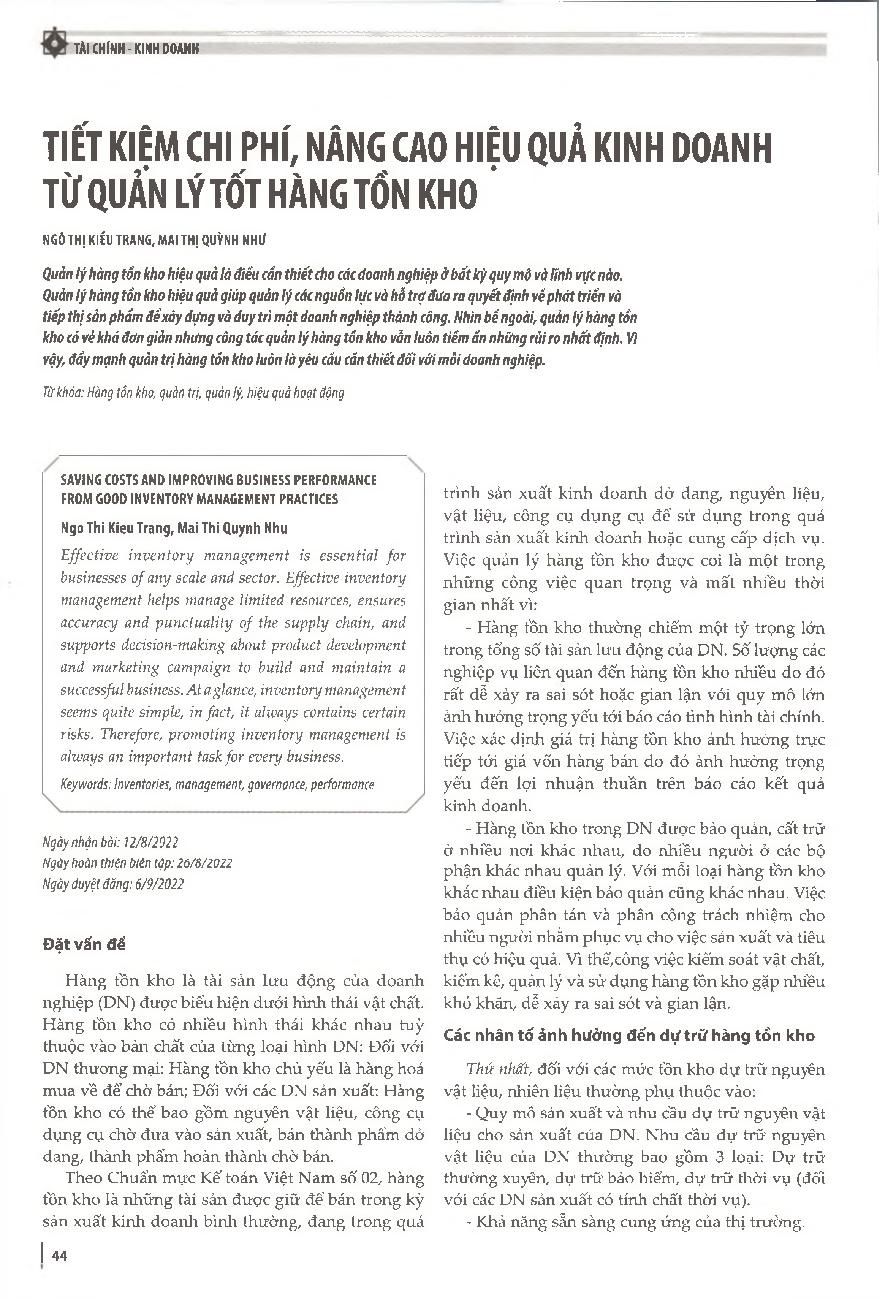 Tiết kiệm chi phí, nâng cao hiệu quả kinh doanh từ quản lý tốt hàng tồn kho = Saving costs and improving business performance from good inventory management practices
