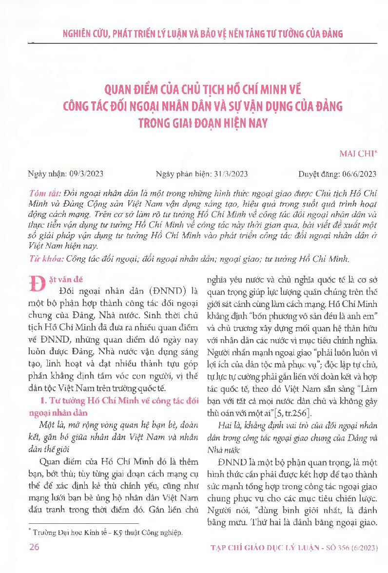 Quan điểm của chủ tịch Hồ Chí Minh về công tác đối ngoại nhân dân và sự vận dụng của Đảng trong giai đoạn hiện nay