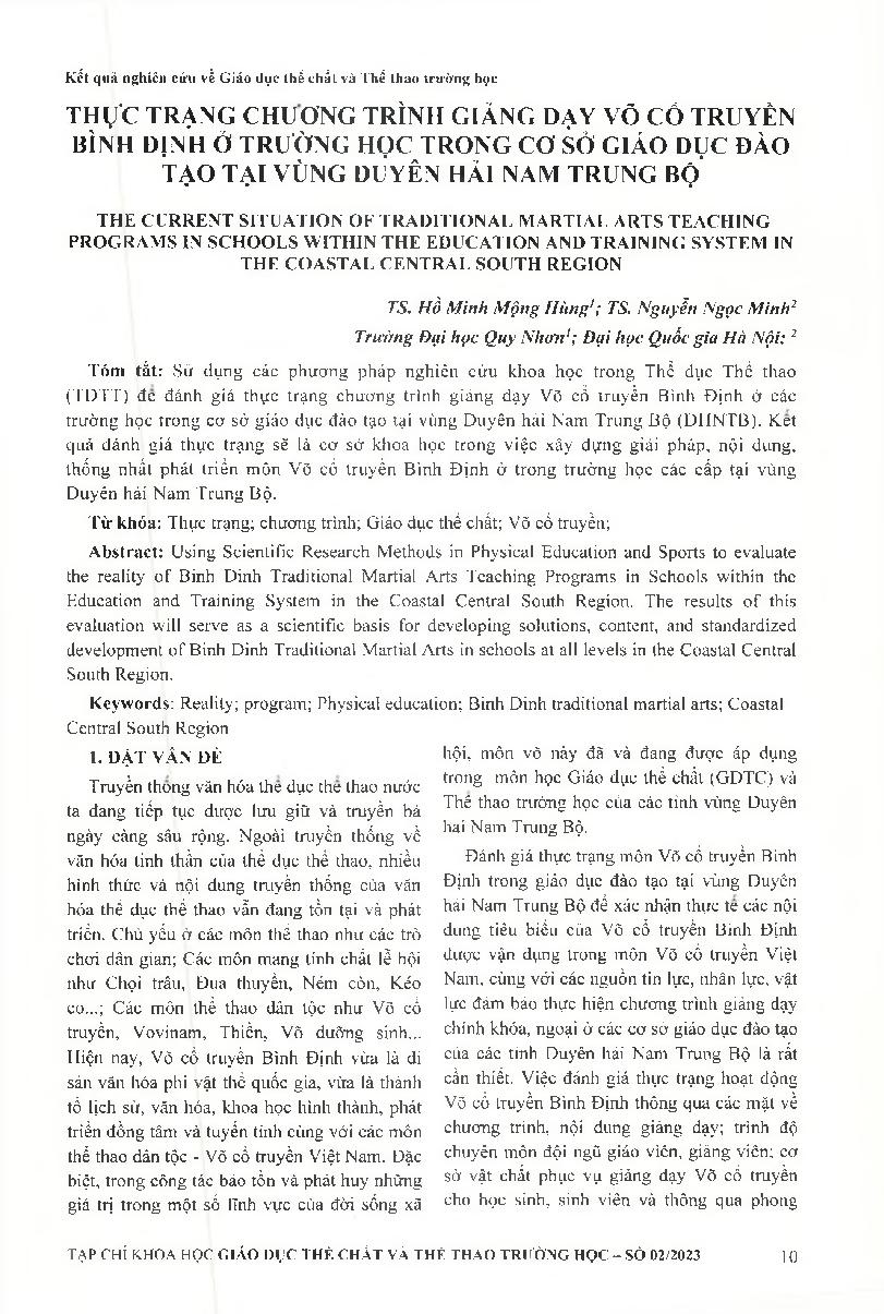 Thực trạng chương trình giảng dạy Võ cổ truyền Bình Định ở trường học trong cơ sở giáo dục đào tạo tại vùng Duyên Hải Nam Trung Bộ