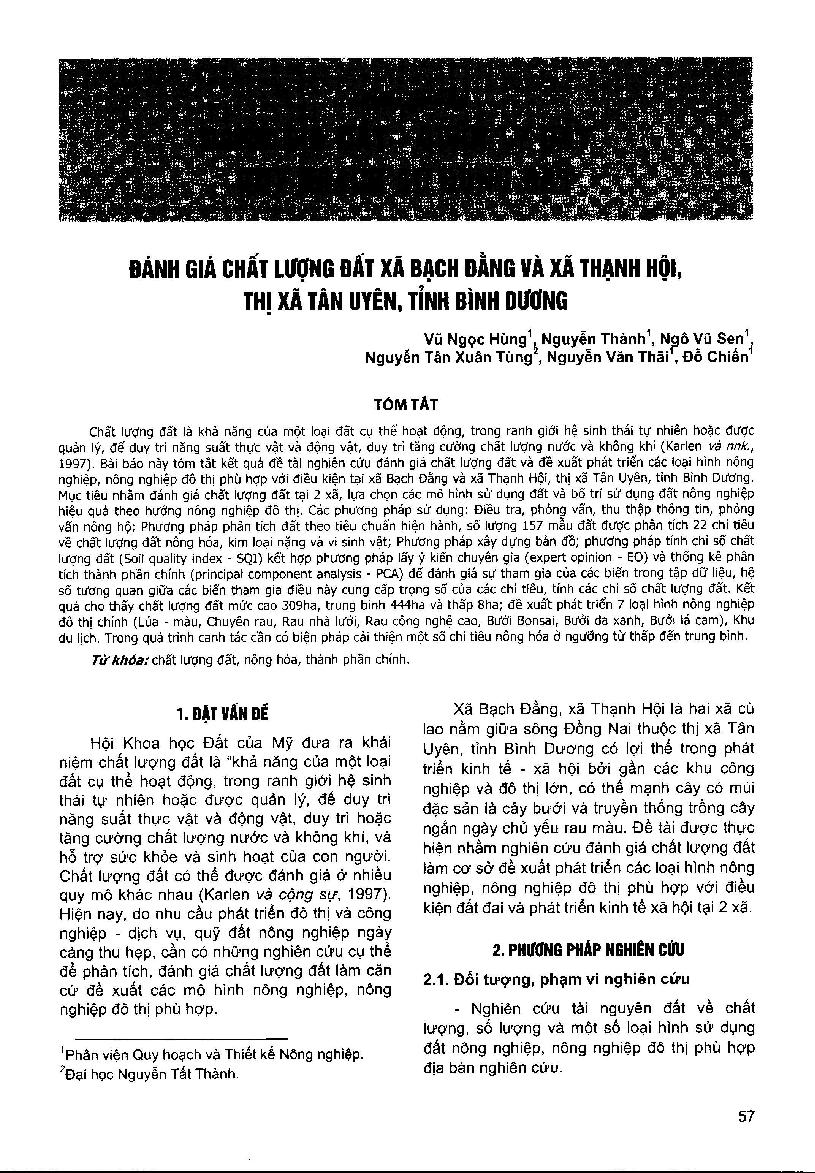 Đánh giá chất lượng đất xã Bạch Đằng và xã Thạnh Hội, thị xã Tân Uyên, tỉnh Bình Dương
