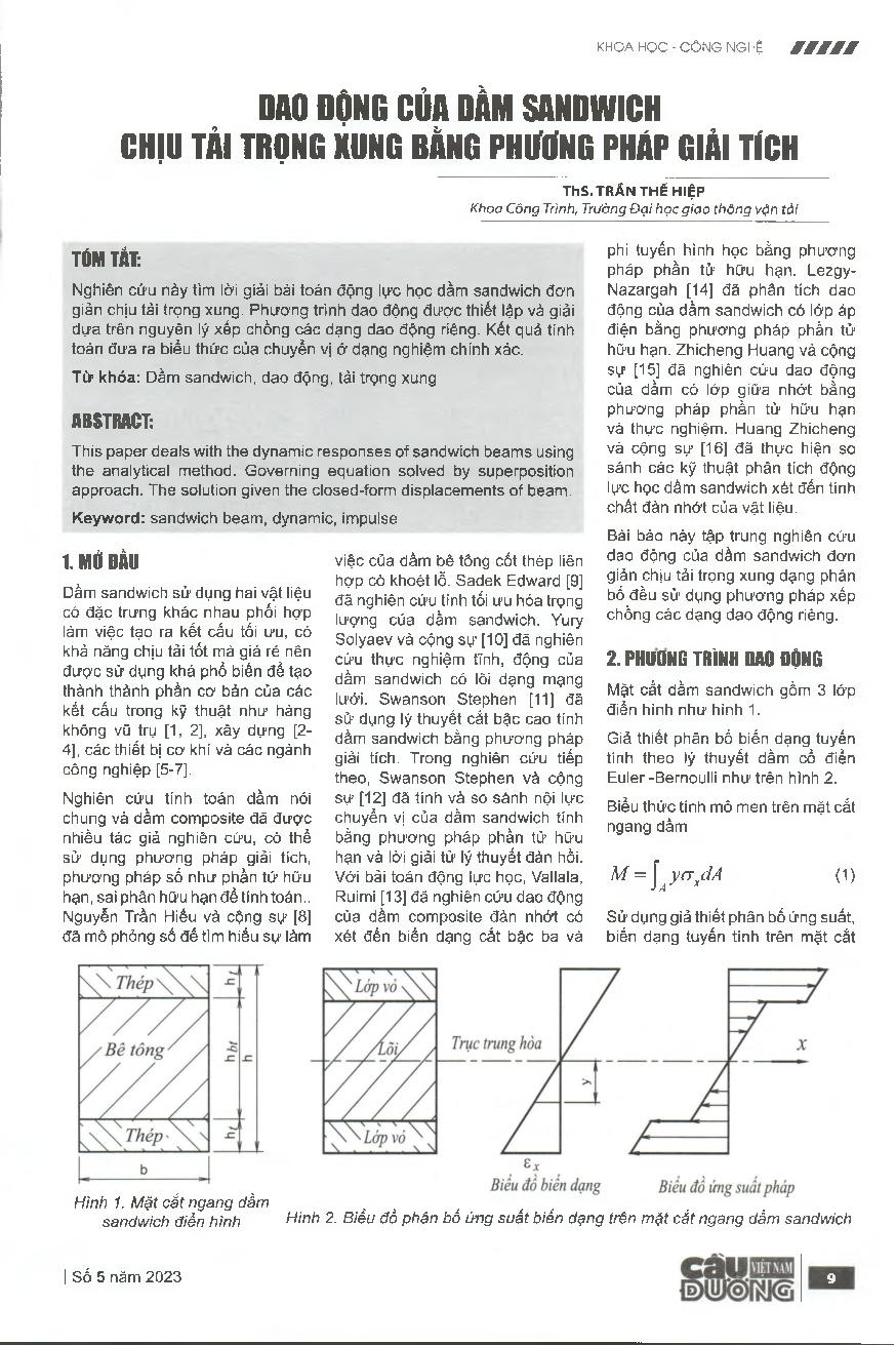 Dao động của dầm sandwich chịu tải trọng xung bằng phương pháp giải tích = Dynamic of sandwich beam subjected impulse using analytical method