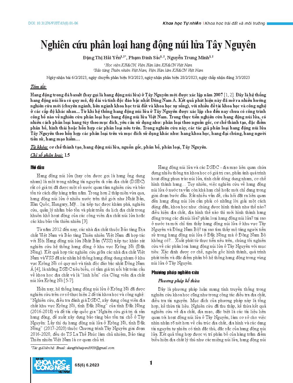 Nghiên cứu phân loại hang động núi lửa Tây Nguyên = Research for the classification of volcanic caves in the Central Highlands