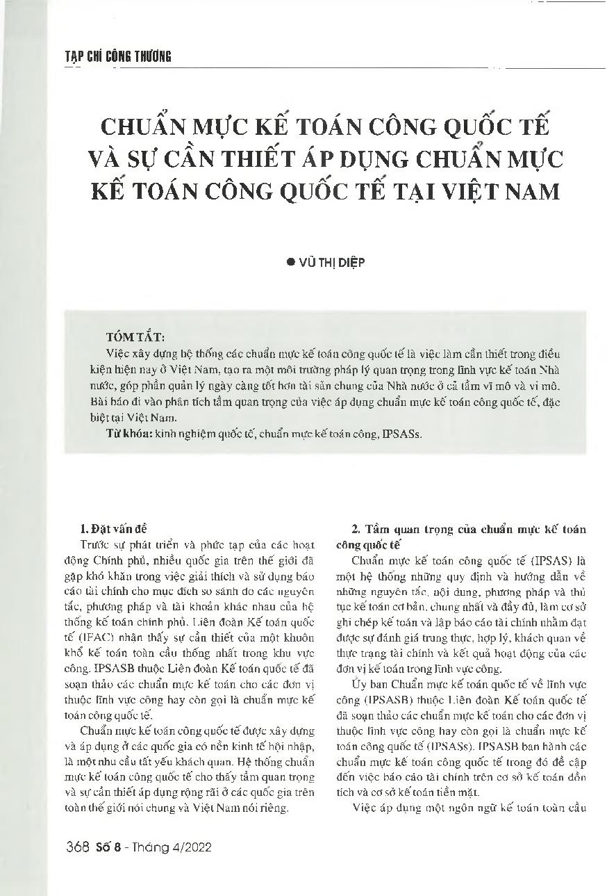 Chuẩn mực kế toán công quốc tế và sự cần thiết áp dụng chuẩn mực kế toán công quốc tế tại Việt Nam = International public accounting standards and the important of using these accounting standards in Vietnam