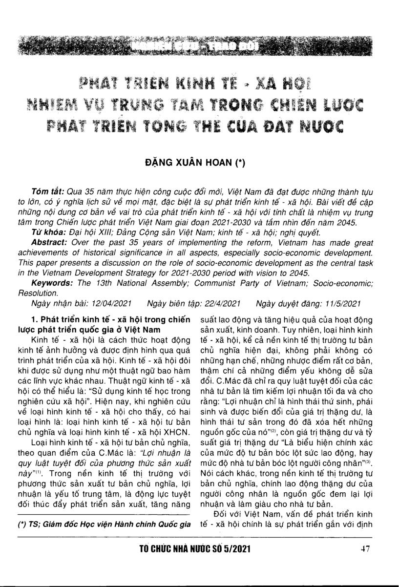 Phát triển kinh tế - xã hội nhiệm vụ trung tâm trong chiến lược phát triển tổng thể của đất nước