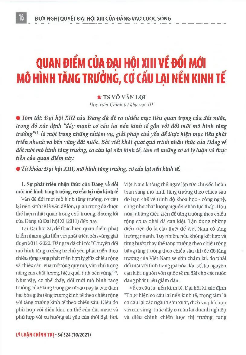 Quan điểm của Đại hội XIII về đổi mới mô hình tăng trưởng, cơ cấu lại nền kinh tế = The views of K.Marx and F.Engels on family and its application in building Vietnamese families