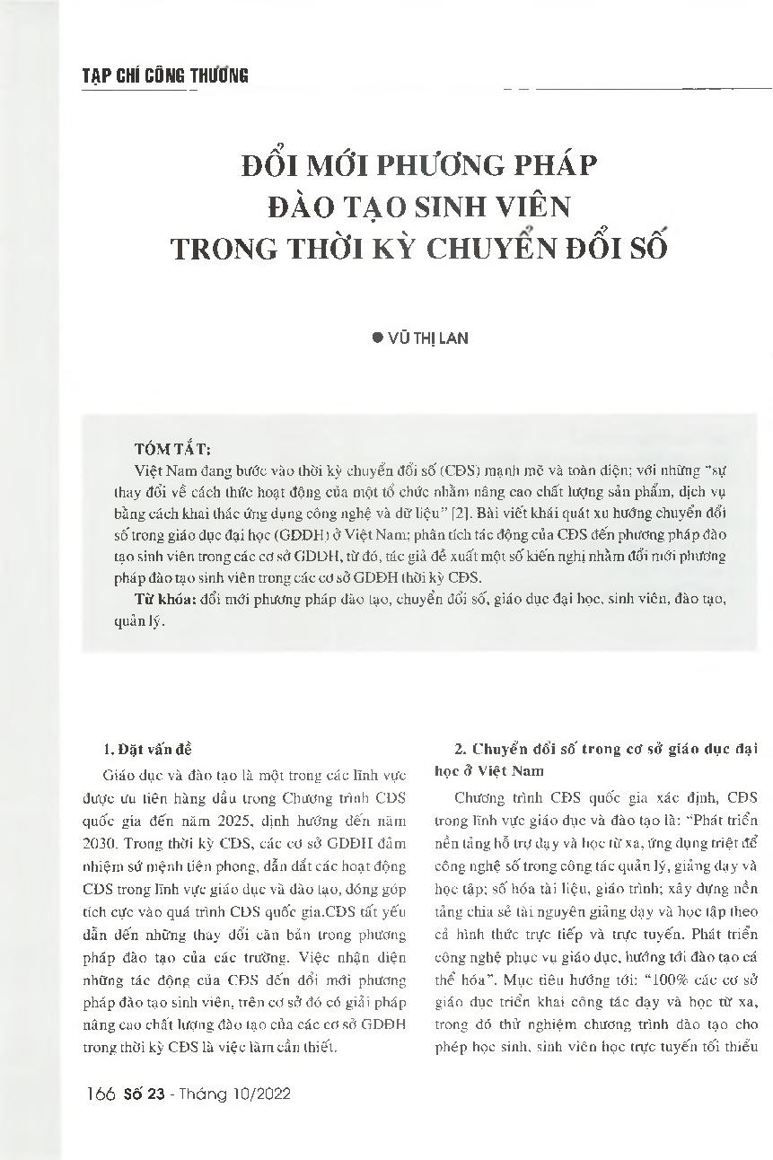 Đổi mới phương pháp đào tạo sinh viên trong thời kỳ chuyển đổi số = Innovating the training methods of higher educational institutions in the context of digital transformation