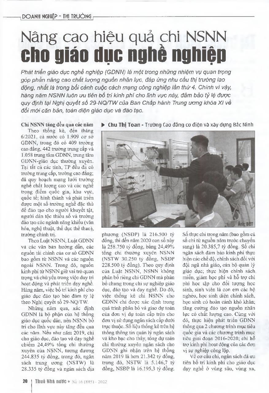 Nâng cao hiệu quả chi ngân sách nhà nước cho giáo dục nghề nghiệp = Improve the efficiency of state budget spending on vocational education