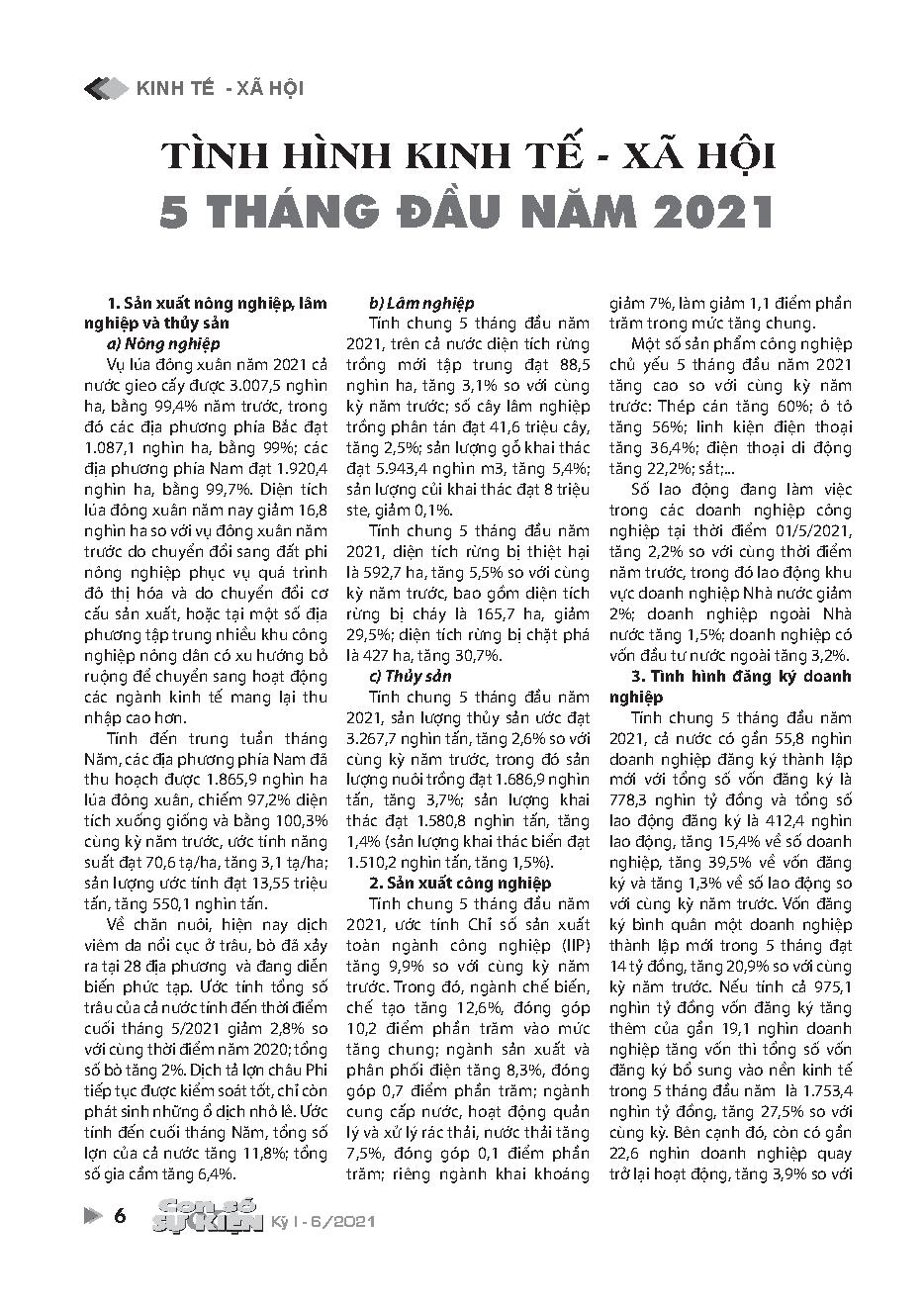 Tình hình kinh tế - xã hội 5 tháng đầu năm 2021