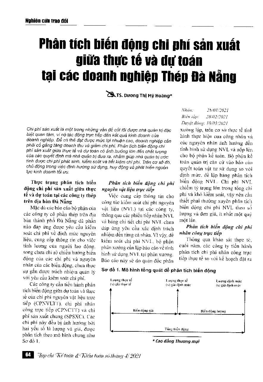 Phân tích biến động chi phí sản xuất giữa thực tế và dự toán tại các doanh nghiệp thép Đà Nẵng