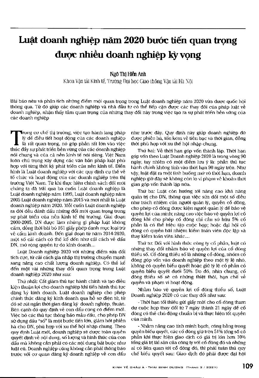 Luật doanh nghiệp năm 2020 bước tiến quan trọng được nhiều doanh nghiệp kỳ vọng