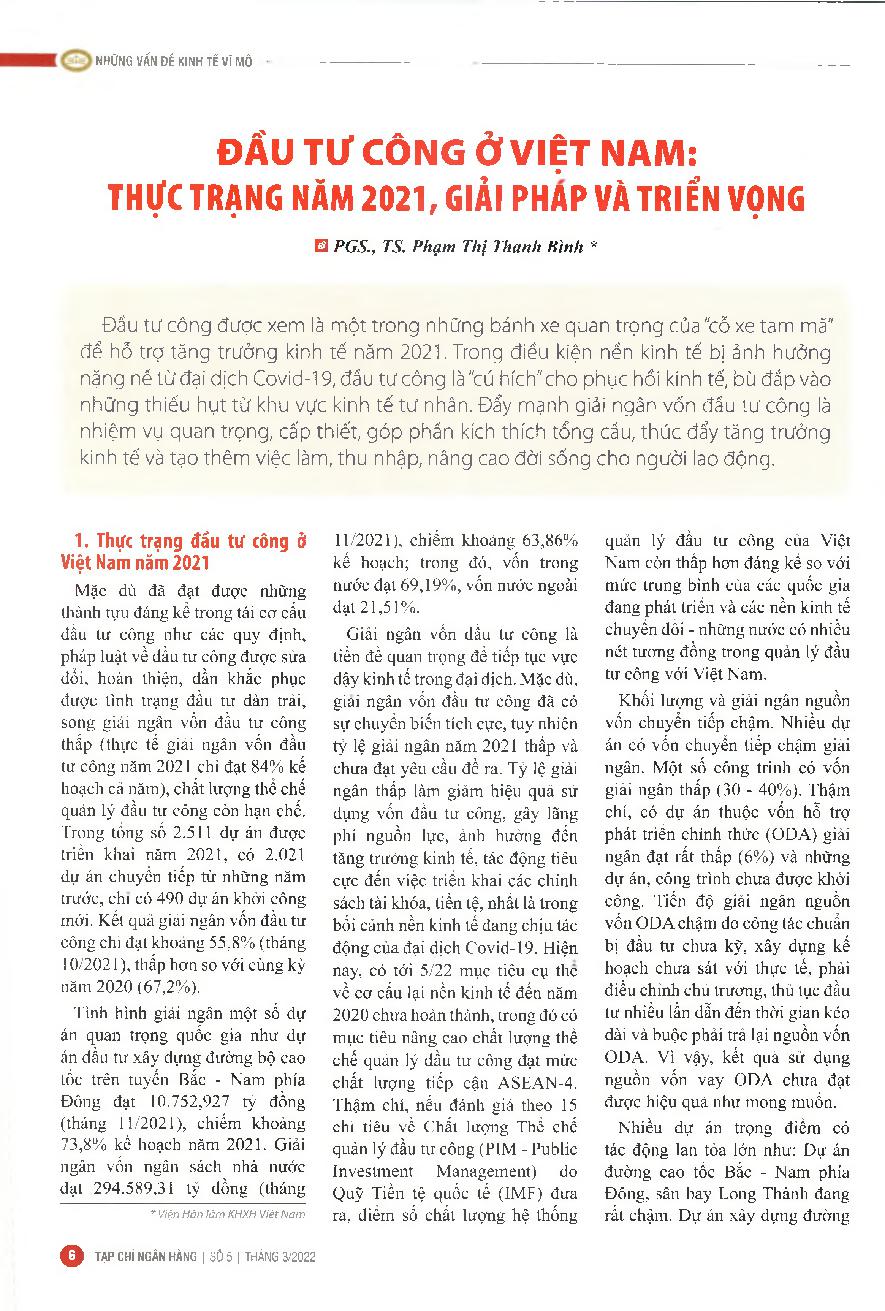 Đầu tư công ở Việt Nam: Thực trạng năm 2021, giải pháp và triển vọng = Công ty tư vấn tại Việt Nam: Thực hiện năm 2021, giải pháp và triển vọng