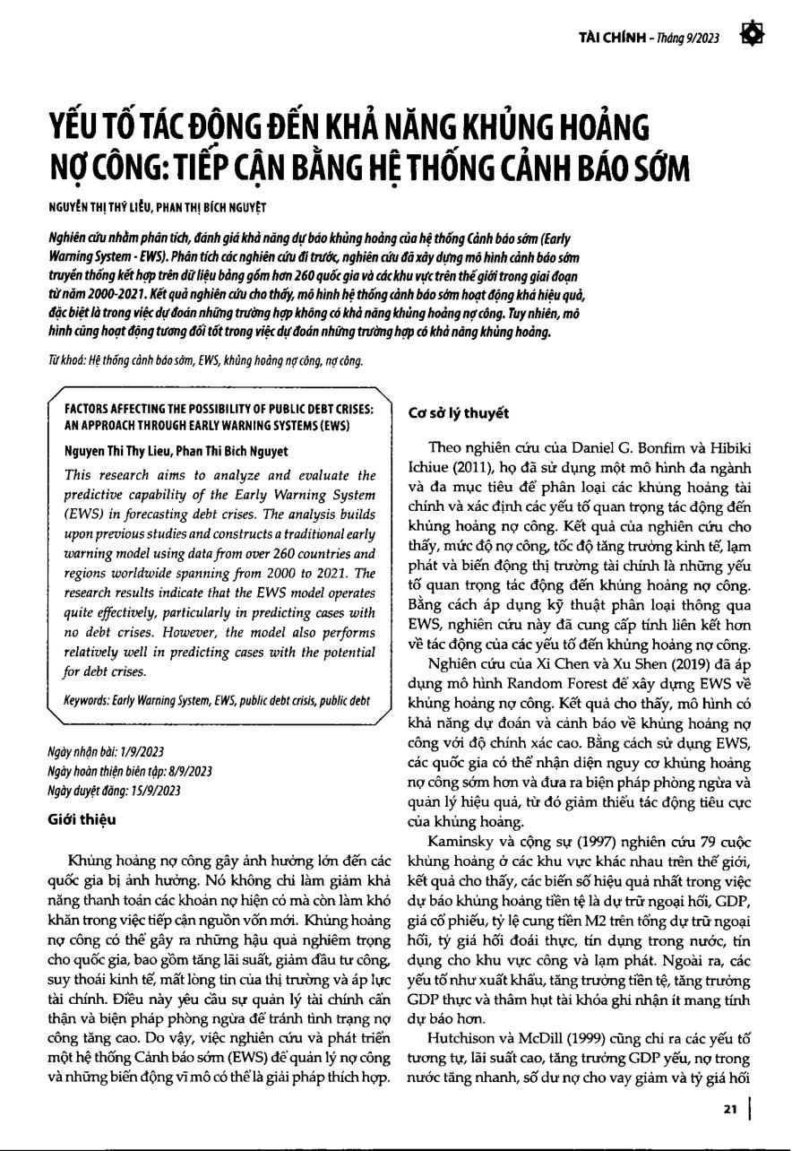 Yếu tố tác động đến khả năng khủng hoảng nợ công: Tiếp cận bằng hệ thống cảnh báo sớm