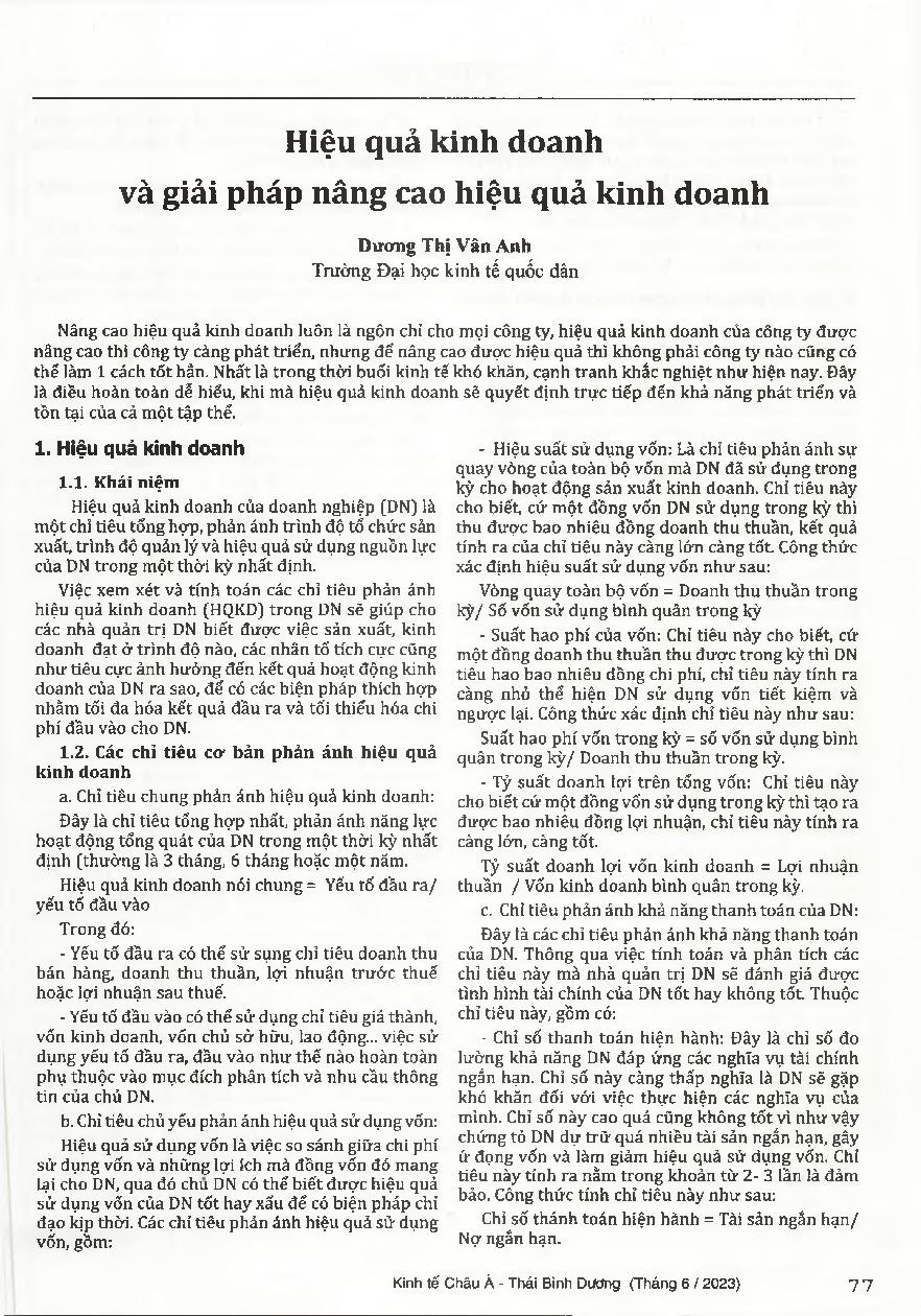 Hiệu quả kinh doanh và giải pháp nâng cao hiệu quả kinh doanh