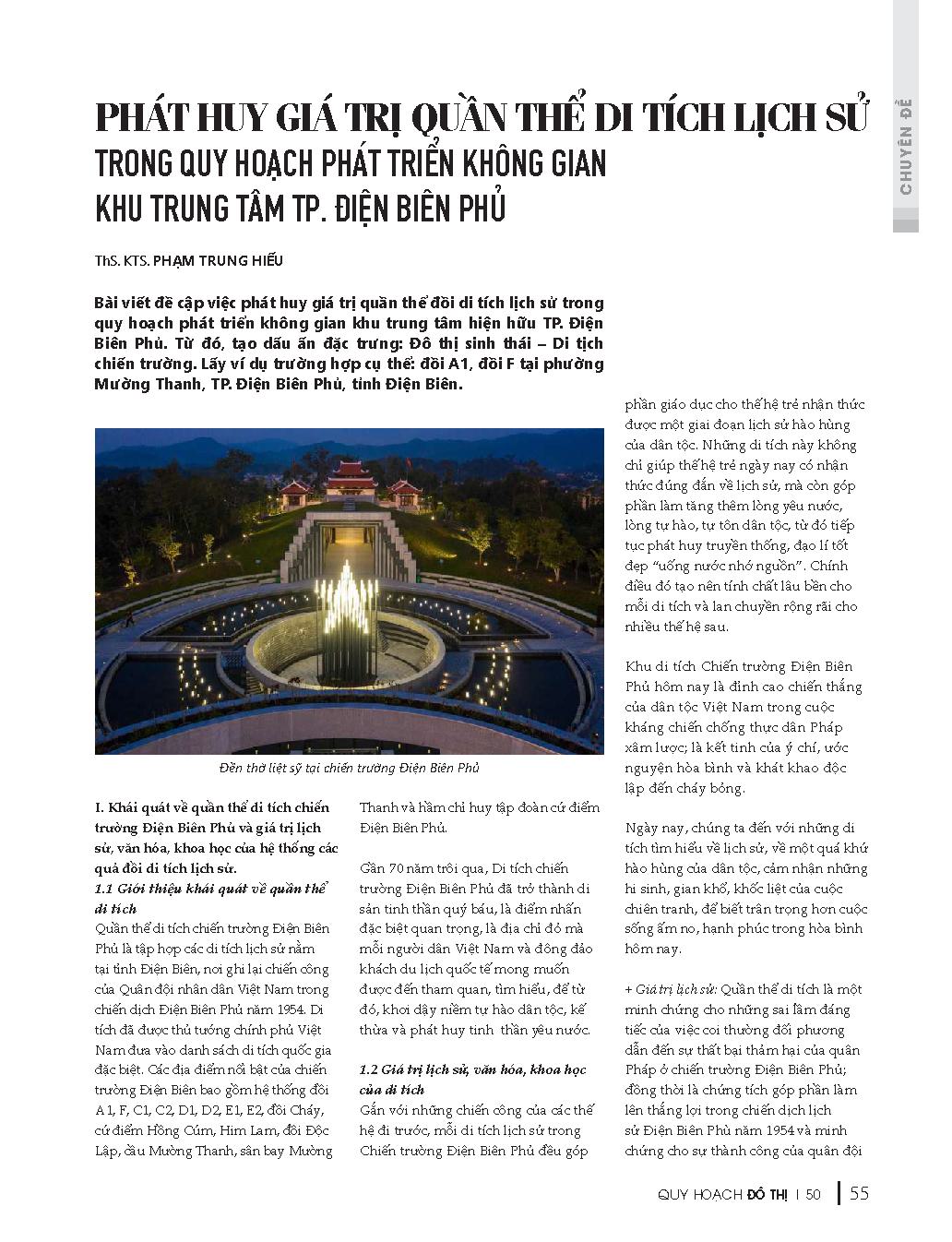 Phát huy giá trị quần thể di tích lịch sử trong quy hoạch phát triển không gian khu trung tâm TP. Điện Biên Phủ